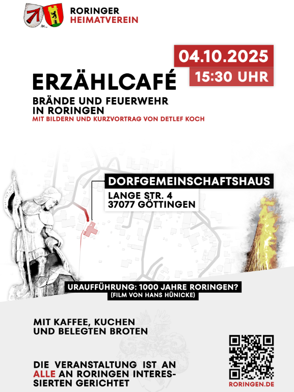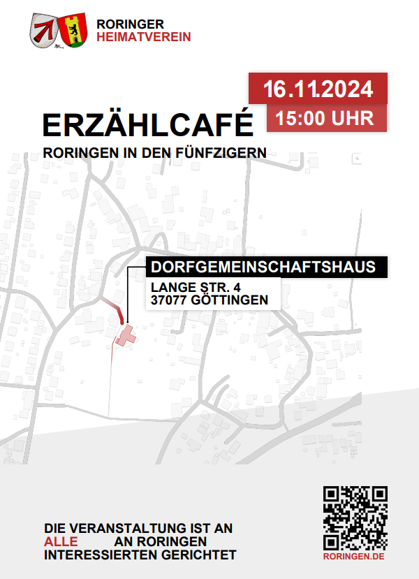 Mit dem Erzählcafé (Dorfabend) soll eine Veranstaltungsreihe gestartet werden, bei der in angenehmer Runde über Roringer Themen erzählt werden kann.